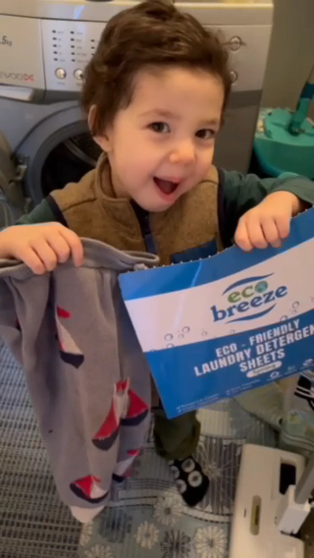 EcoBreeze™ перилните кърпички са много лесни за използване. Просто поставете една кърпичка в барабана на пералнята за стандартно пране. За повече използвайте две кърпички, а за по-малко- половин кърпичка. Няма нужда от мерене и разливане.